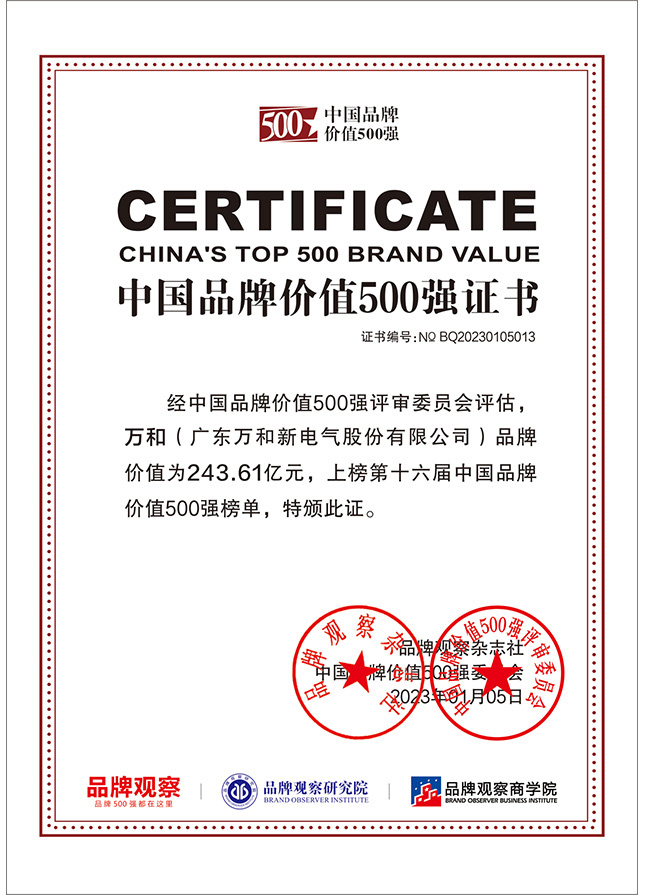 中國品牌價值500強證書