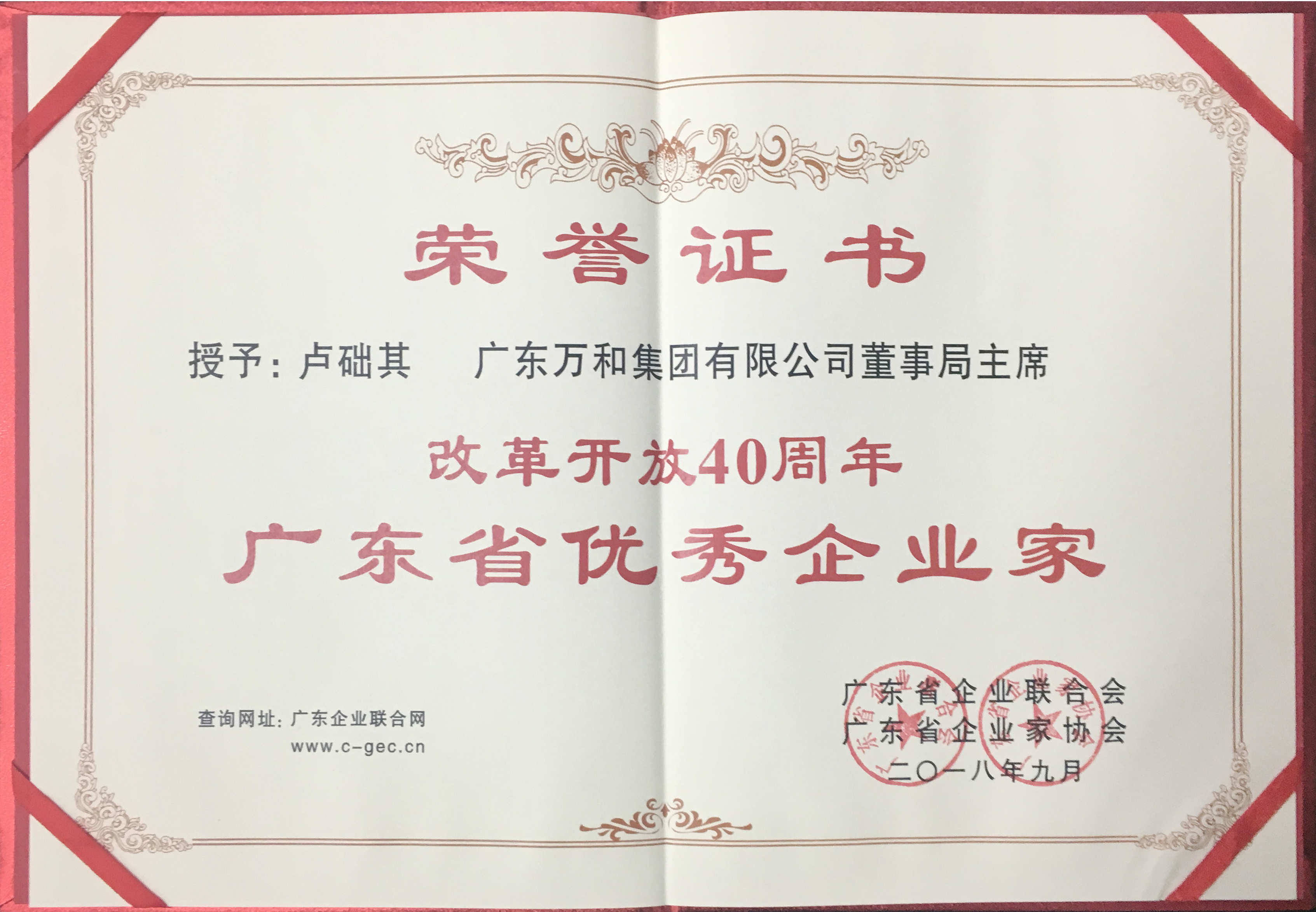 9月26日,由廣東省企業聯合會、廣東省企業家協會主辦的主題為“時代榜樣 不忘初心再出發”第24屆廣東省企業家活動日大會在廣州隆重舉行。許家印、董明珠、李東生以及萬和企業集團董事局主席盧礎其等數十名知名企業家在本次活動上榮膺改革開放40周年“廣東省優秀企業家”,廣東省委書記李希接見了優秀企業、優秀企業家代表,省長馬興瑞出席會議并講話。