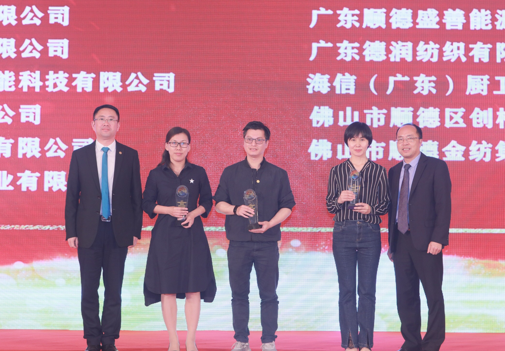 萬和電氣總裁盧宇聰(左三)接受“經濟發展和科技創新”獎。