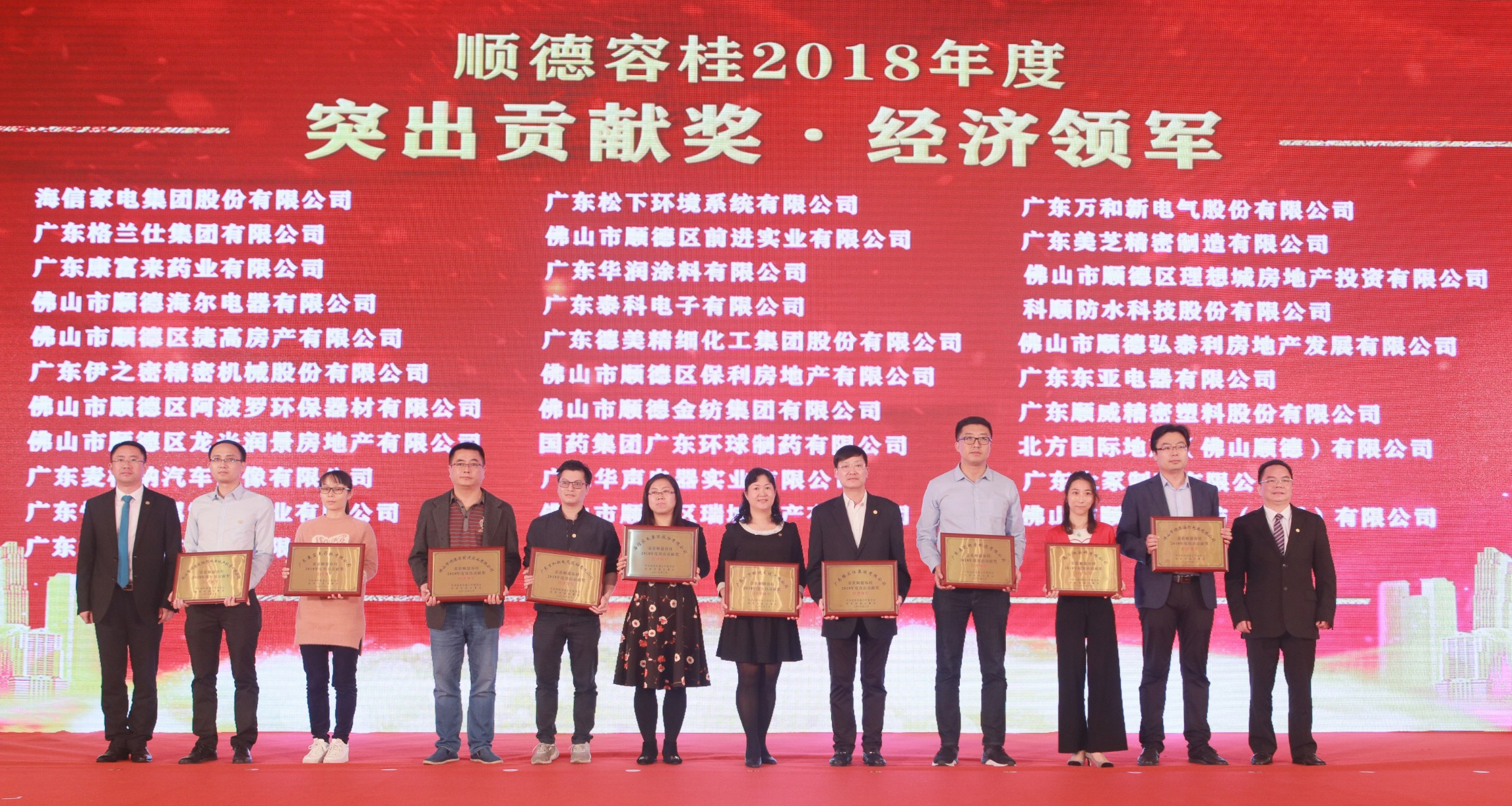 據悉,2018年度容桂突出貢獻獎中的“經濟領軍”獎是表彰2018年度納稅額超3000萬元的容桂企業;“經濟發展和科技創新”獎則是表彰2018年度為容桂經濟發展做出重大貢獻、在促進地方產業升級轉型方面具有重要影響的容桂企業,包括獲得省級或以上的技術創新獎項、認定或示范企業稱號,并由此取得良好的經濟或社會效益、產生較大影響的企業;引入獲認定為省級或以上高端科研創新人才和團隊的企業;本年度成功掛牌上市的企業等。