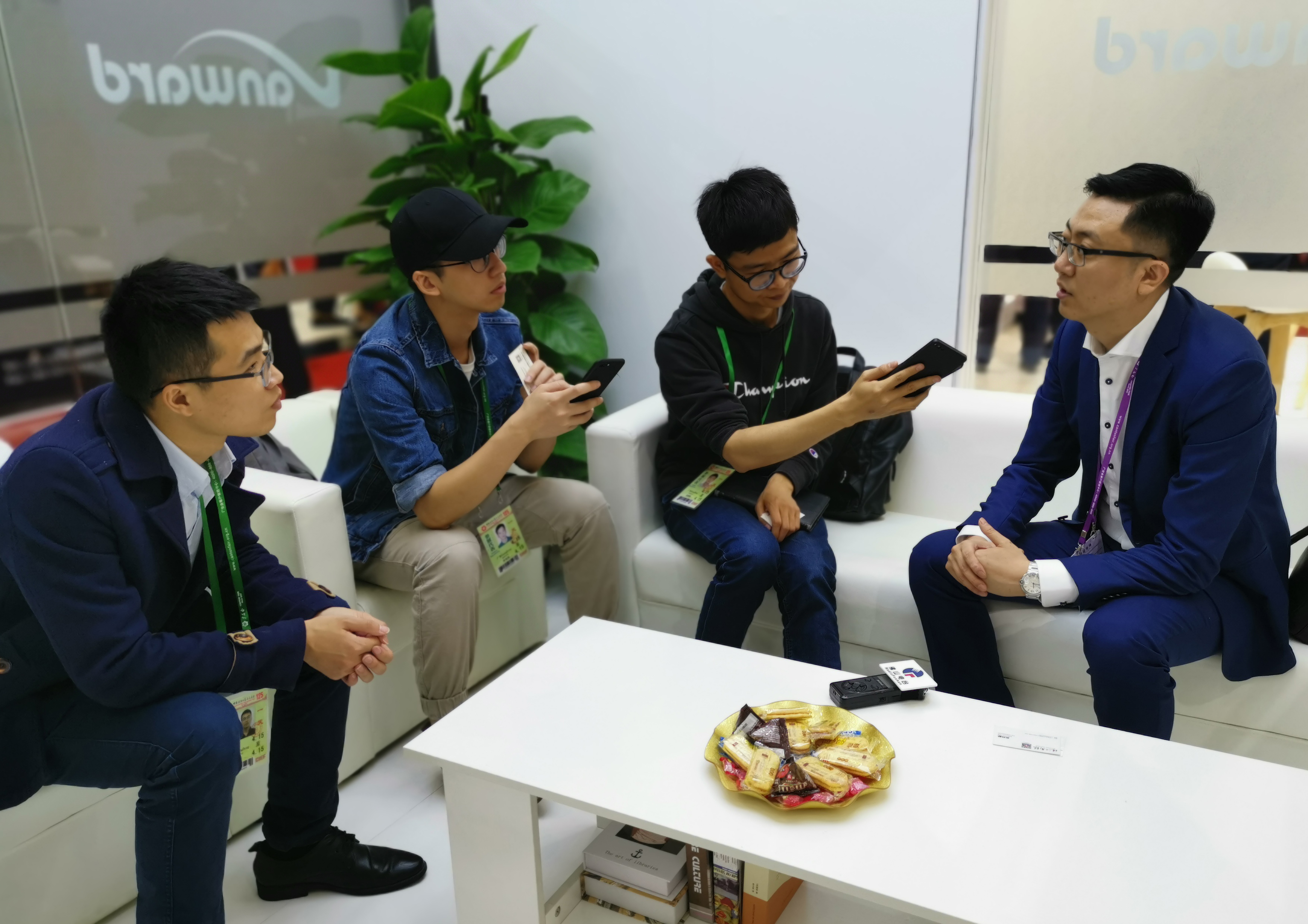 副總裁楊頌文(左2)向參觀展位的嘉賓介紹獲得兩項大獎的產品。