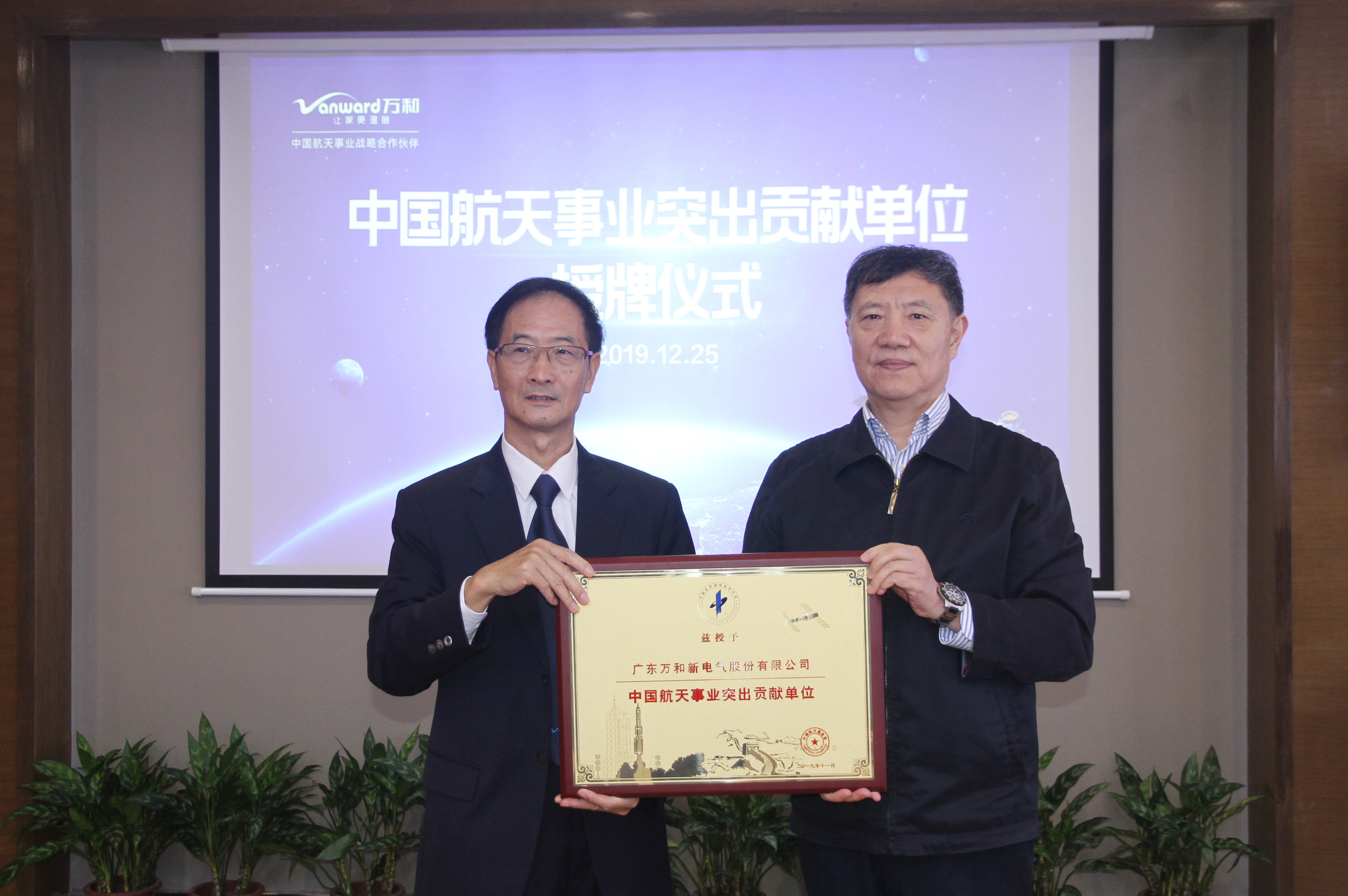 12月25日,中國航天基金會吳志堅理事長、王塞南副秘書長、事業部長楊愛民一行蒞臨廣東萬和新電氣股份有限公司,專程為萬和頒發“中國航天事業突出貢獻單位”,也是全國第一家獲此殊榮的單位。這是中國航天基金會對萬和一直以來關注中國航天、支持航天事業發展的最高褒獎。