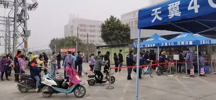 (萬博電氣員工有序排隊體檢后進入廠區)