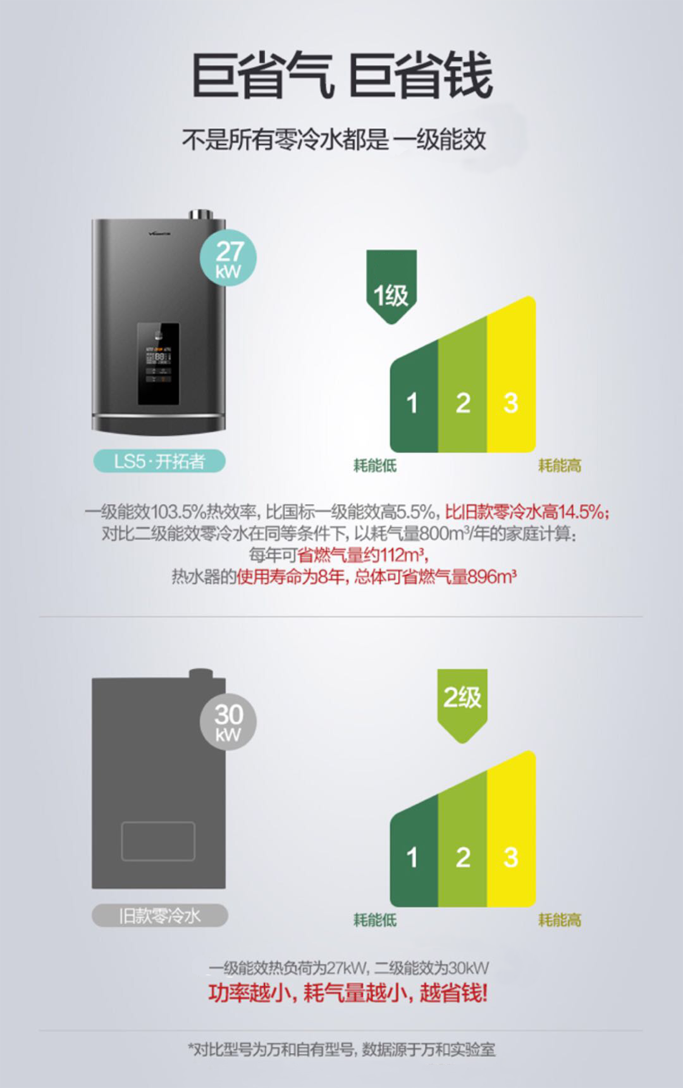 隨著國家對家電能效標準的愈加嚴格,低碳環保生活理念被越來越多的家庭接受,如何生產出節能的產品以滿足市場日益增長的需求,如何在節能上提前布局搶得市場先手,是熱水器企業需要關注的問題。近日,燃氣熱水器頭部企業萬和率先推出了行業一級能效LS5系列零冷水燃氣熱水器,熱效率高達103.5%,比國標一級能效高5.5%,成為行業先行者。