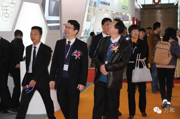 萬和電氣董事長葉遠璋陪同順德區經濟局常務副局長張鵬參觀萬和展位
