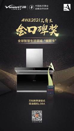 萬和潛吸式吸油煙機L08A與萬和BANF頒芙系列-SA3“濾凈”智控雙屏燃氣熱水器,在2021年AWE展會上分別斬獲艾普蘭金口碑獎與優秀產品獎!