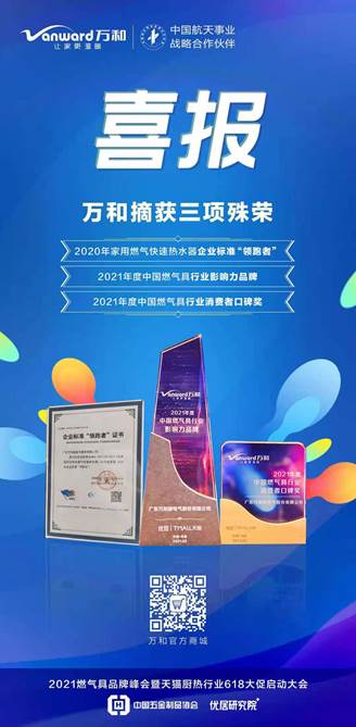 本次峰會,廣東萬和新電氣股份有限公司以行業標桿品牌代表的身份參會,并榮膺“2020年家用燃氣快速熱水器企業標準“領跑者”、“2021年度中國燃氣具行業影響力品牌”和“2021年度中國燃氣具行業消費者口碑獎”三項大獎。