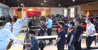 在本次全員核酸檢測活動中,萬和疫情防控工作小組迅速行動,組織黨群先鋒隊迅速收集員工信息,協調安排活動現場的布置,及時向全體員工進行了緊急通知,并著手核酸檢測的前期準備工作。全體員工上下一心,積極響應防疫需求,大家根據要求有序排隊,全程佩戴口罩,依次進行核酸檢測。僅一個多小時就完成了高黎總部近2000名員工的全員核酸采樣工作,確保全覆蓋、無遺漏,順利完成了本次專場活動。