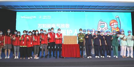 萬和黨支部書記、董事長葉遠璋代表公司向醫護團隊贈送慰問禮品。