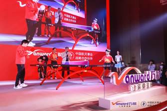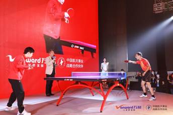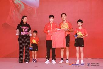 此外,在發布會現場,萬和集團董事長盧楚隆還與孫穎莎進行了一場“乒乓切磋”,雙方的精彩表現贏得了現場的一陣陣歡呼和熱烈的掌聲。此外,還有兩位可愛的小朋友作為乒乓球的小粉絲和愛好者上場與孫穎莎進行了友好地互動。隨后,孫穎莎還現場簽名球衣球拍贈送盧楚隆董事長及兩位小粉絲紀念,盧楚隆董事長也代表萬和向孫穎莎送出頒芙高端套系的產品作為回禮。