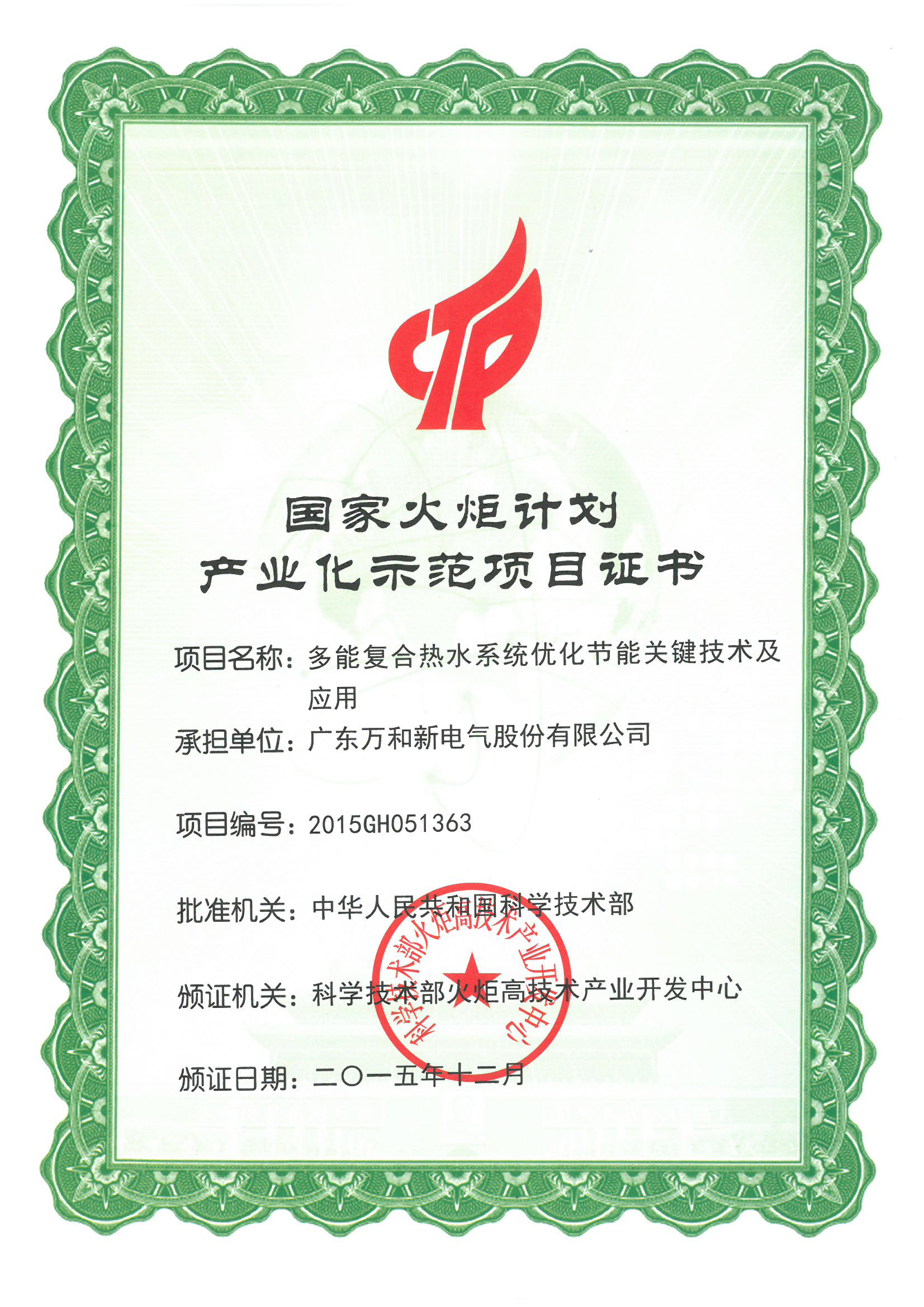 早在2015年5月,萬和“多能復合熱水系統優化節能關鍵技術及應用”項目就順利通過了由中國輕工業聯合會組織并主持的科技成果鑒定,與會專家組一致認為,該項目整體技術水平達到國際先進水平。據了解,此項目屬節能環保技術領域,獲得了4件發明專利和4件實用新型專利,研制了一種太陽能加熱單元、空氣源熱泵加熱單元和燃氣加熱單元梯級加熱優化節能的熱水系統,通過這3個加熱單元復合或通過其中任何兩個加熱單元復合,提供一種環境條件和能源資源適應范圍廣,節能、環保、經濟的熱水設備,實現了節能和降低運行成本的目的。該熱水系統可提供舒適的熱水供應,以滿足廣大用戶生活或采暖需要。