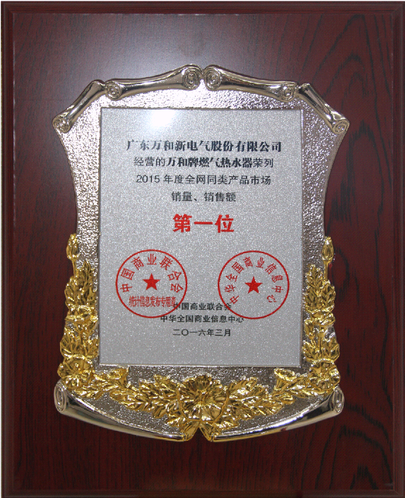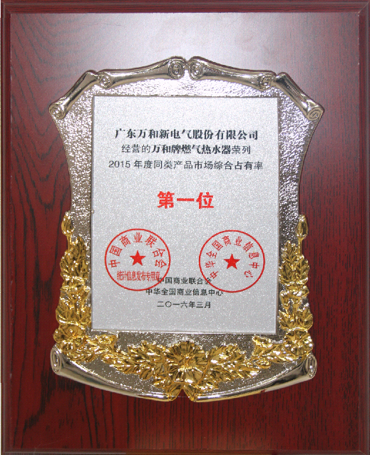 《全國大型零售企業暨消費品市場2015年度監測報告》顯示,2015年燃氣熱水器銷售306344臺,其中萬和燃氣熱水器市場占有率11.12%,市場銷售份額16%,連續十二年市場綜合占有率第一。