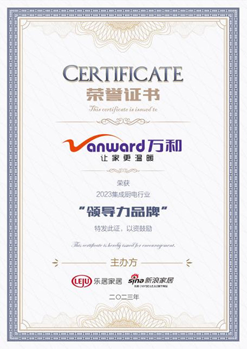 萬和集成灶榮獲2023集成廚電行業“領導力品牌”
