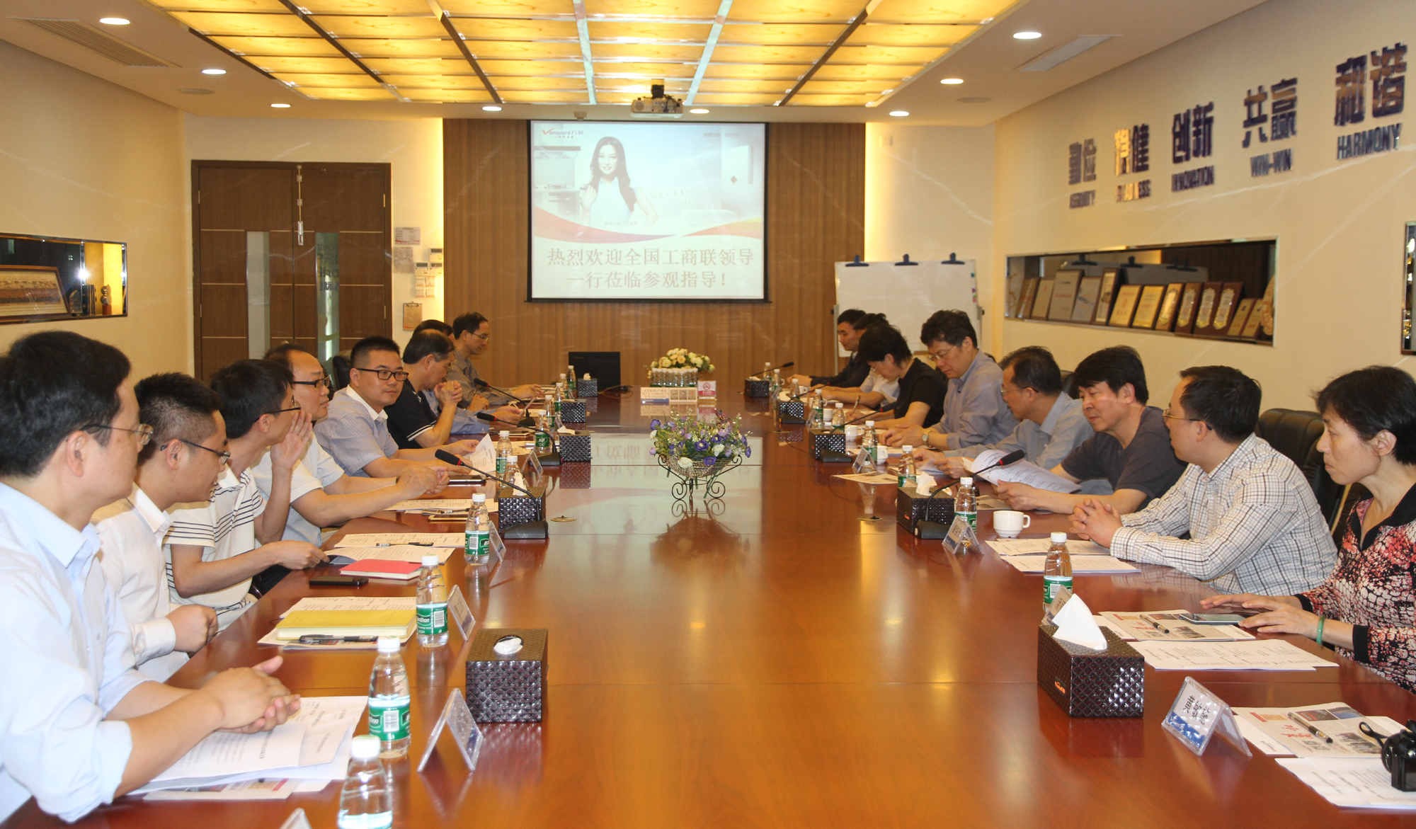 4月24-29日,由中央統戰部、工信部、科技部、全國工商聯等單位組成的全國工商聯聯合調研組來到廣東省展開“制造業民營企業”調研活動,按計劃走訪珠三角廣州、深圳、佛山、順德等地區,遴選在裝備制造業、轉型升級、品牌建設方面取得卓越成就的民營企業作為調研對象。4月25日,全國工商聯聯合調研組由全國工商聯研究室主任林澤炎帶隊,在省工商聯副主席盧小周、佛山市統戰部副部長朱衛華及順德區副區長蔡偉等相關領導的陪同下,蒞臨萬和進行考察調研,而萬和也是順德僅有的兩家被選為調研目標的企業之一。