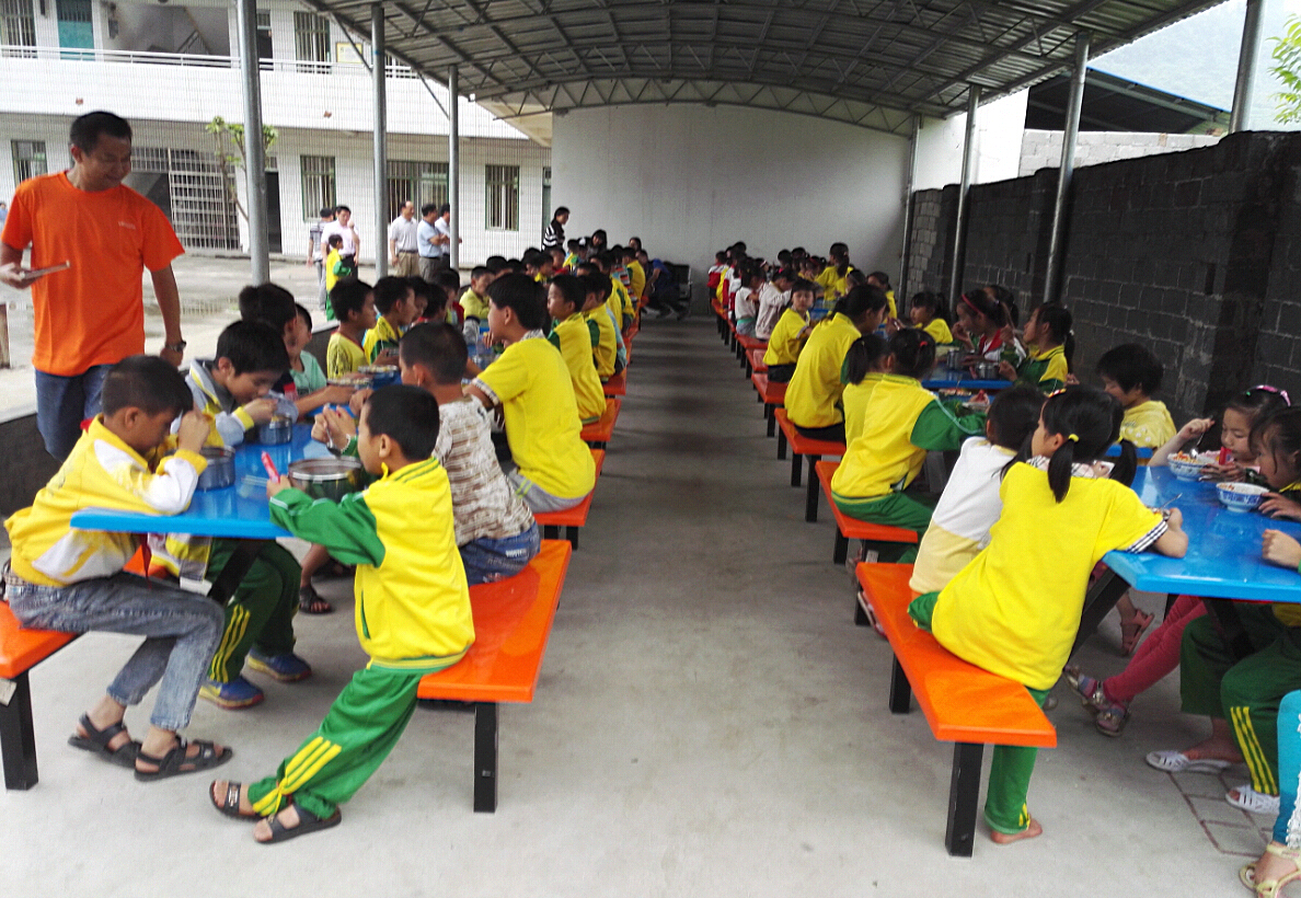 以前,孩子們無論嚴冬立夏,都只能蹲在操場的角落里用餐