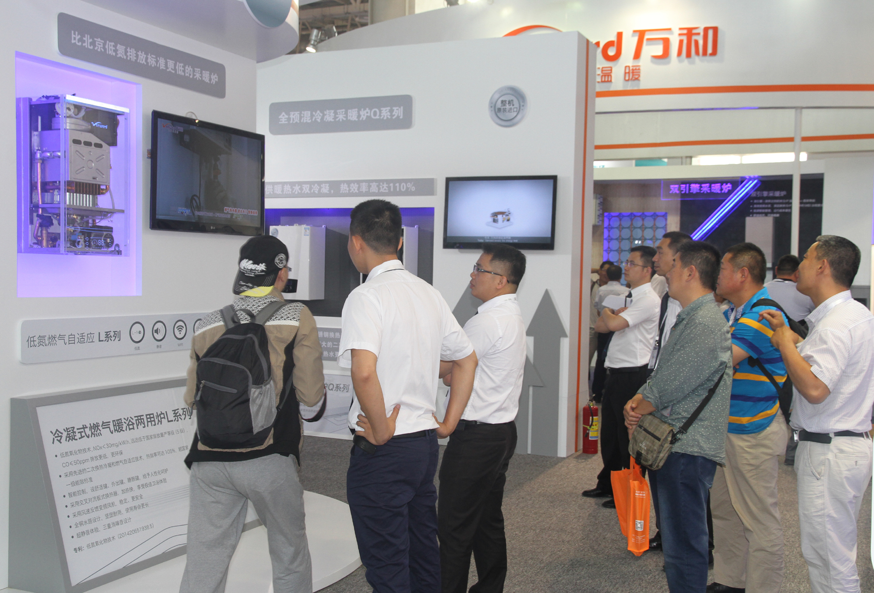 展出的低氮燃氣自適應系列產品、全預混冷凝Q系列、雙引擎采暖爐。