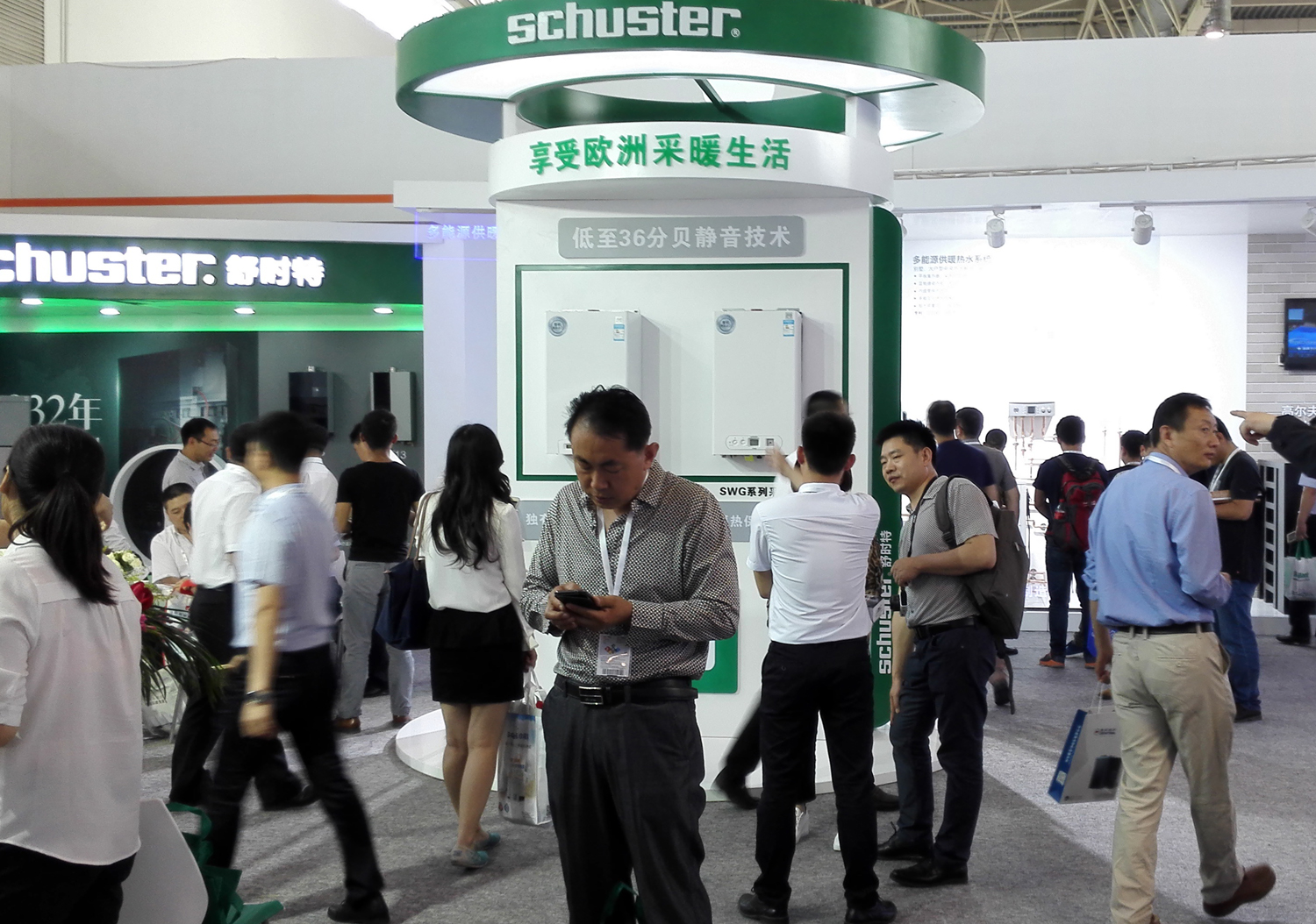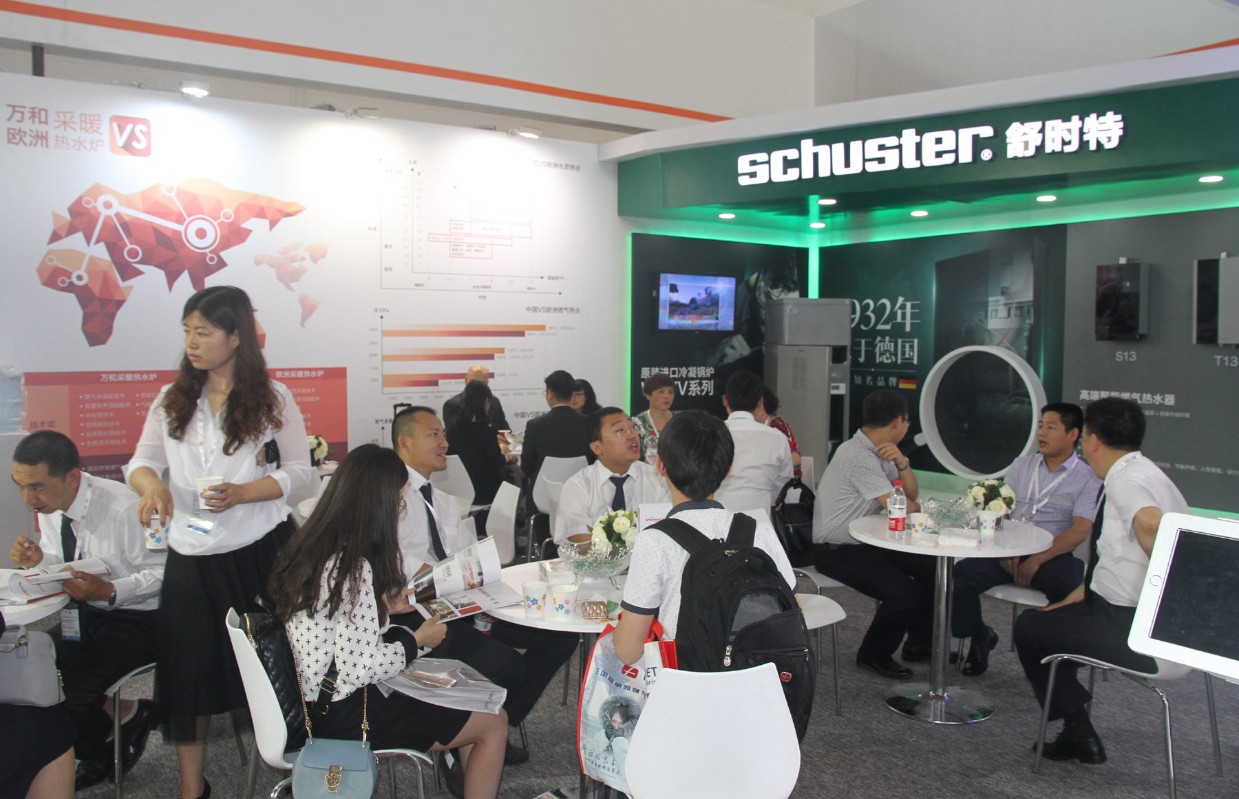 德國原裝進口Schuster品牌獨特的靜音技術和冷凝技術SWG系列、EVE系列和BWA系列。現場展出的冷凝鍋爐WKVV系列,具有超低溫冷凝組件、低氮預混燃燒器,熱效率可高達109%。