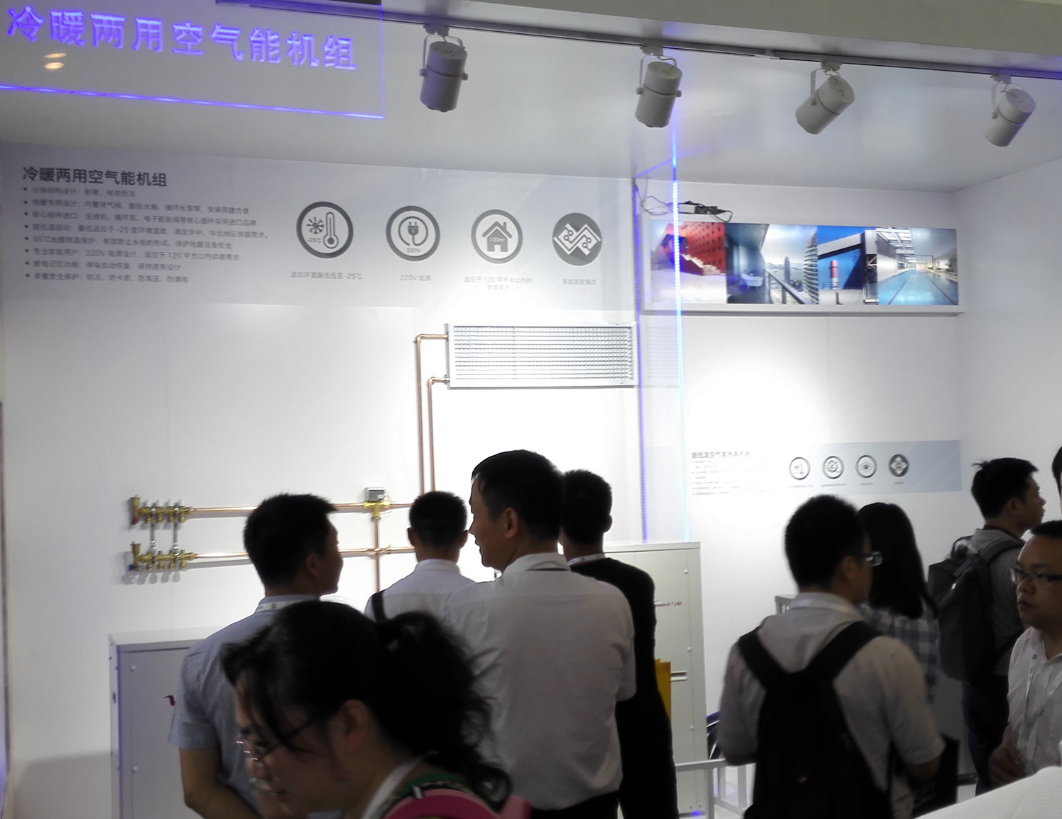 展出的冷暖兩用空氣能機組及多能源供暖/熱水系統。