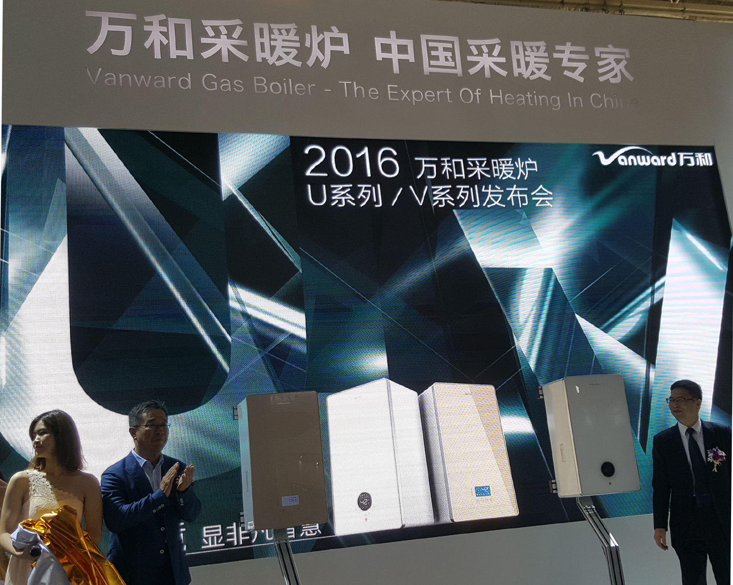 展會期間,萬和還舉辦了以“見證非凡采暖科技”為主題的萬和熱能2016新品發布會主題的新品。現場發布家用燃氣壁掛爐U系列、家用燃氣壁掛爐V系列以及700KW、1000KW商用冷凝鍋爐等多款新品。