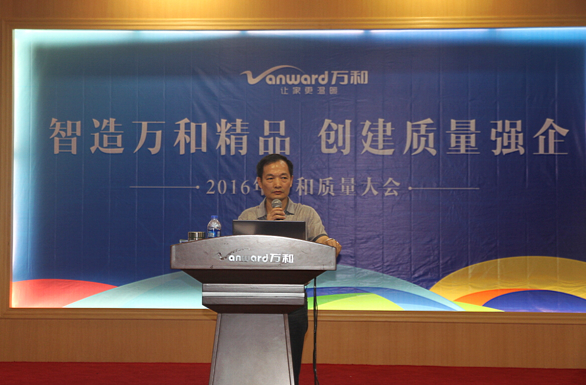 目前,隨著中國制造業轉型升級如火如荼地開展,質量強國戰略已經成為國家最高層領導的重要共識之一。廣東省、佛山市也相繼召開質量大會,部署推進實施質量強省、質量強市戰略。中央政治局委員、省委書記胡春華也強調,質量是引領經濟發展的標桿,是一個國家和地區綜合實力、競爭力的重要體現。在此背景下,為弘揚企業的質量理念,推動企業質量管理持續升級,6月12日下午,萬和電氣隆重召開2016年質量大會,對2016年上半年的質量工作進行了總結,并安排部署2016年度“智造萬和精品,建設質量強企”重點工作,萬和集團董事局主席盧礎其,萬和電氣董事長葉遠璋、總裁盧宇聰以及董監高成員、各級相關部門的管理人員約300人共同出席本次會議。