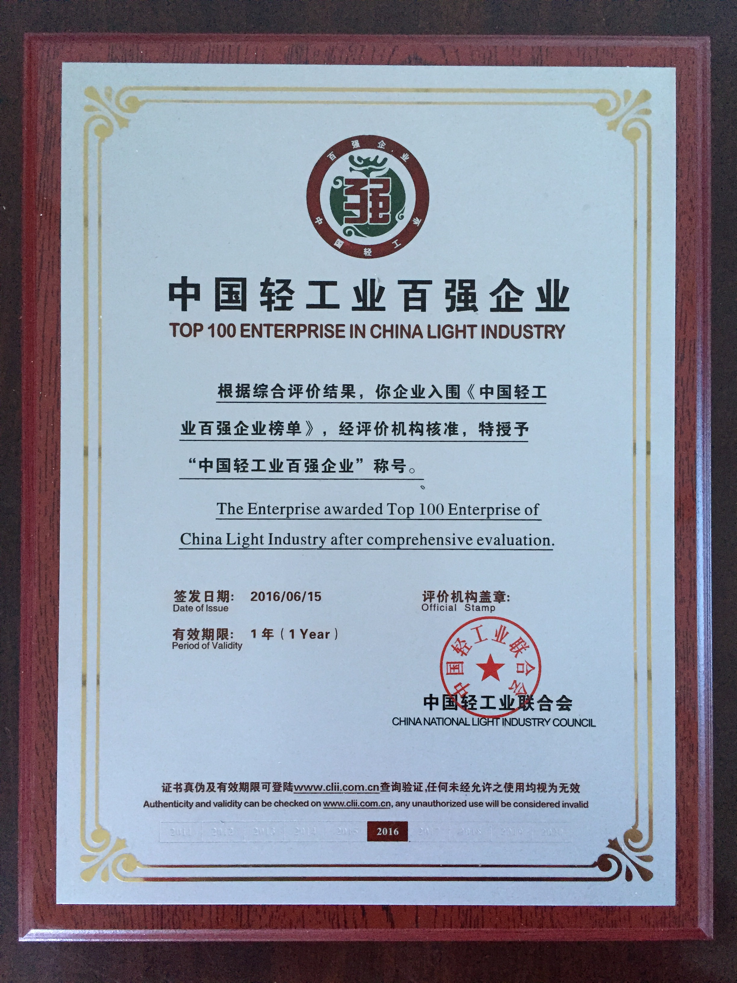 6月15日,由中國輕工業聯合會主辦的“第五屆中國輕工業企業家高峰論壇暨輕工業百強企業頒獎盛典”在北京舉行,大會發布了“2015年度中國輕工業百強企業”榜單,廣東萬和新電氣股份有限公司榮登榜單,這是萬和繼2014年度后再度入選“中國輕工業百強企業”。