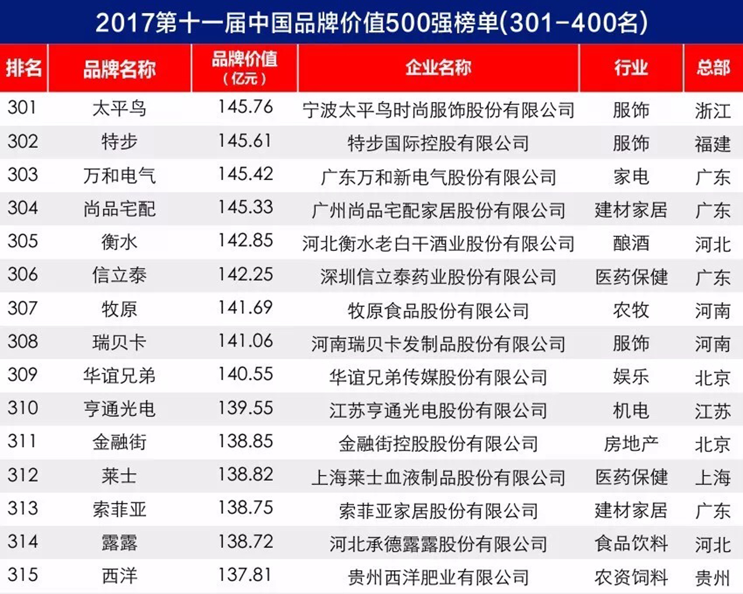 據了解,第十一屆中國品牌價值500強評選活動由品牌觀察雜志社聯合中國品牌研究院、廣東工業大學品牌觀察研究院、廣東省企業品牌建設促進會等國內200多家機構共同主辦。中國品牌研究院和廣東工業大學品牌觀察研究院是國內擁有定量算法的品牌價值榜單評估機構,由中國品牌研究院和廣東工業大學品牌觀察研究院所搭建的品牌價值評估模型,體系涵蓋了品牌價值評估最核心的幾個重要考評指標,包括年營業收入、營業利潤、行業屬性、行業地位、品牌歷史等,完全符合品牌價值評估國際標準,能夠一一找到對應的專業依據。