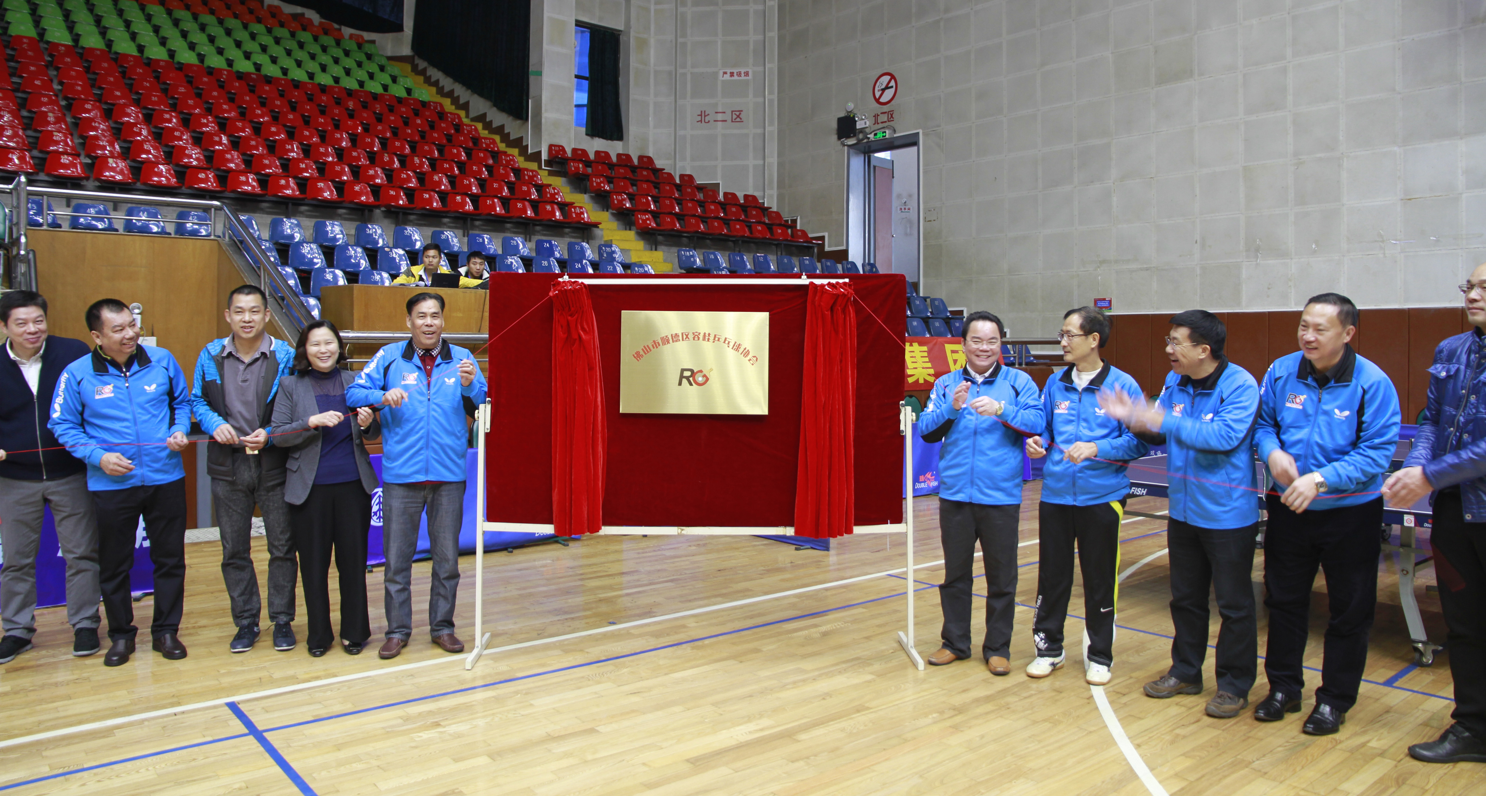 順德區容桂乒乓球協會揭牌儀式。(左四為盧楚隆董事長)