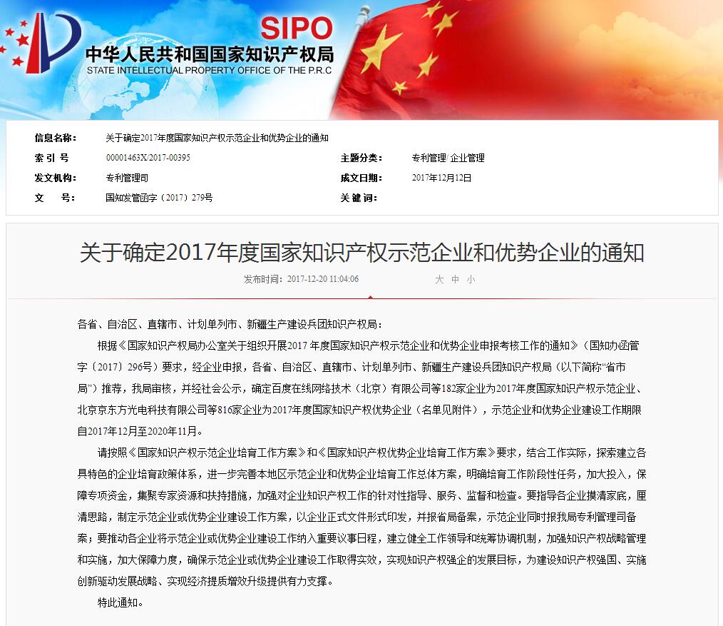 日前,國家知識產權局發布《2017年度國家知識產權示范企業和優勢企業名單》,全國共有182家企業入選“2017年度國家知識產權示范企業”,816家企業入選“2017年度國家知識產權優勢企業”,廣東省僅有22家企業榮登 “2017年度國家知識產權示范企業”,廣東萬和新電氣股份有限公司入選,同時也是廣東廚衛行業僅有的兩家上榜企業之一。