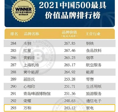 萬和成為中國燃氣具行業品牌價值最高企業