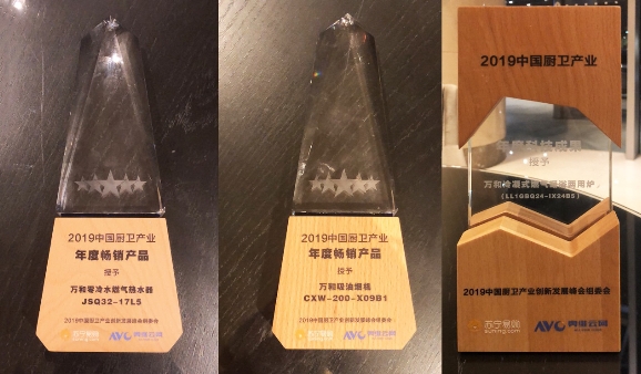為表彰優秀品牌,肯定優質產品,彰顯領軍力量,本屆大會還對廚衛行業的優秀品牌和產品進行了頒獎,萬和榮獲“2019中國廚衛產業深度影響力品牌”,旗下冷凝式燃氣暖浴兩用爐(LL1GBQ24-IX24B5)獲“2019中國廚衛產業年度科技成果”,零冷水燃氣熱水器JSQ32-17L5和吸油煙機CXW-200-X09B1獲“2019中國廚衛產業年度暢銷產品”。