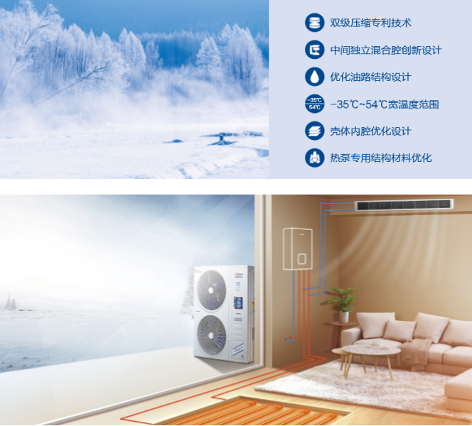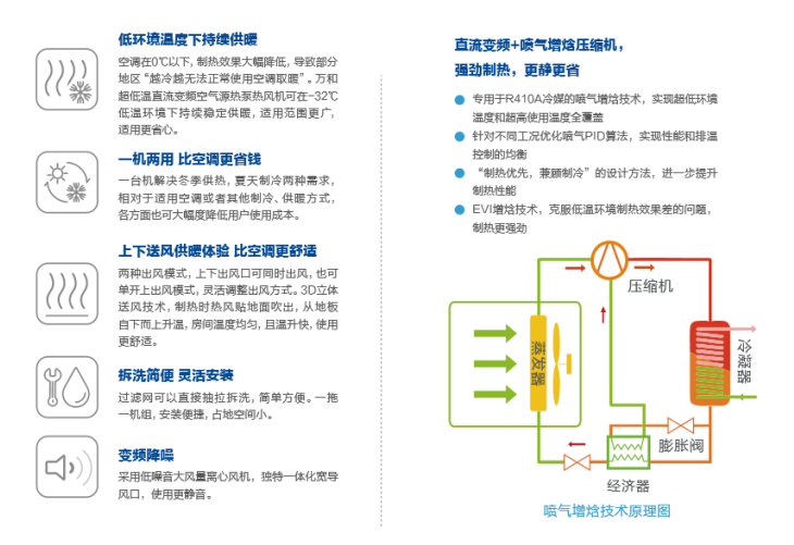 萬和空氣能采暖機-35℃極寒供熱,直流變頻+雙極壓縮+EVI鎖定溫度