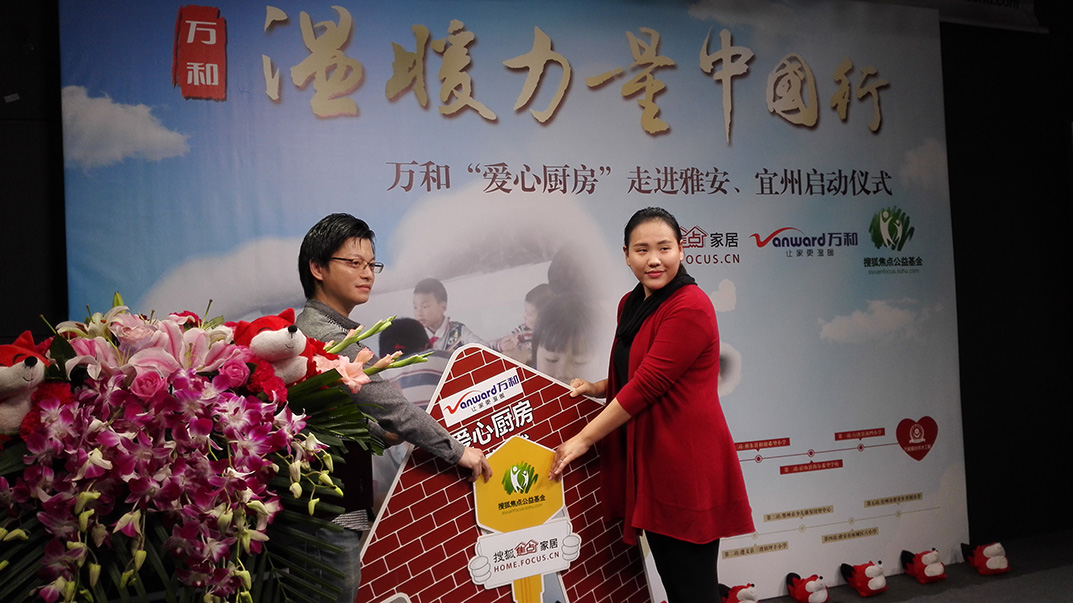 2015年11月13日,由萬和發起的“愛心廚房”公益活動聯手搜狐焦點公益基金聯合舉行“溫暖力量中國行--萬和“愛心廚房”走進雅安、宜州啟動儀式”,搜狐焦點家居地活動進行全程報道。繼廣東韶關山區“愛心廚房”首站、貴州遵義山區“愛心廚房”第二站、湖北鄂州市“愛心廚房”第三站之后,萬和“愛心廚房”聯合搜狐焦點公益基金,即將走進雅安、宜州,持續踐行探索常態化公益機制的承諾,讓更多經濟欠發達地區的孩子沐浴在愛心的陽光下。